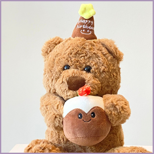 Adorable Happy Birthday Teddy Bear with Cupcake & Birthday Hat
