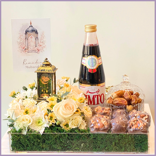 Ramadan Kareem Floral Vimto and Dates Gift Tray