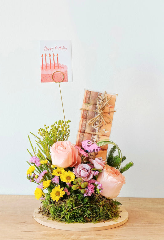 Pink Birthday Bloom Tray with Mini Cake a Dream Bites x Jude Flowers Collab