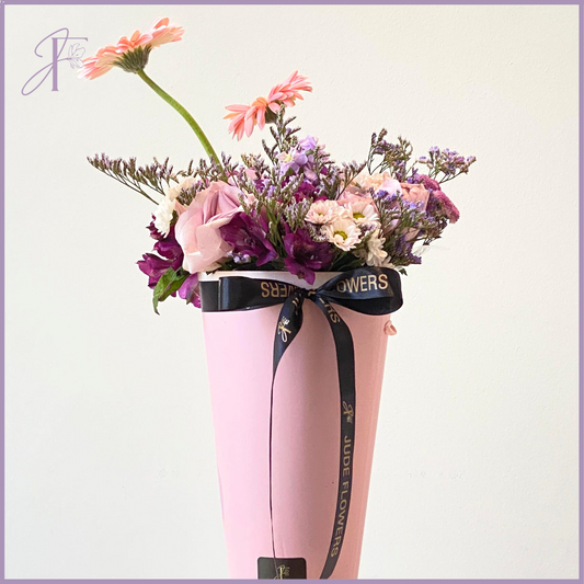 Pink Harmony Floral Bouquet - Elegant Mix in Pink Floral Carrier