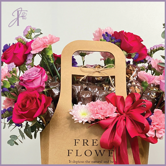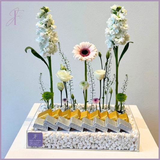 Sweet Blooms & Bites Tray - Elegant Flower & Chocolate Arrangement