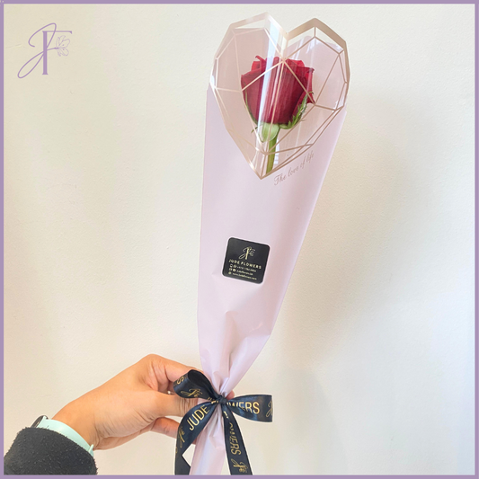 Single Stem Red Rose - Classic Symbol of Love (Wrapped with Ribbon)