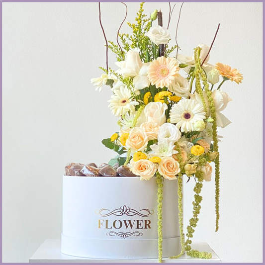 The Golden Garden & Sweet Indulgence Box - Mixed Flowers & Assorted Chocolates
