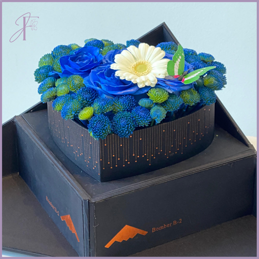 The Royal Blue Heart Gift Box for Fathers (20cm x 24cm) - Flowers & Chocolates for Father's Day