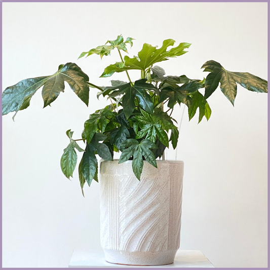 The Wavy Aralia Plant (Fatsia Japonica) - in a Wavy-Textured Ceramic Pot