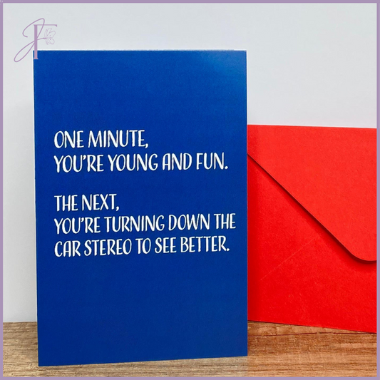 Turning Down Stereo Birthday Card - Humorous Single Card with Red Envelope