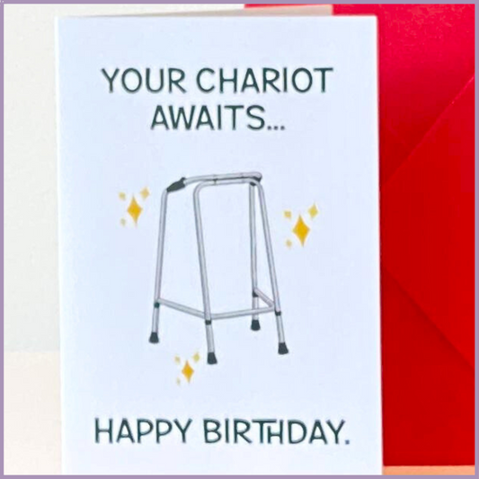 Greeting Card: Funny 'Your Chariot Awaits' Birthday Card