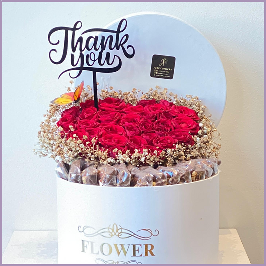 Red Heart Bloom Love Box with Chocolates & Thank you Acrylic Topper