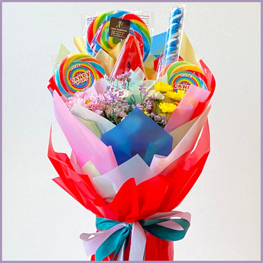 Candy Pop Bloom Bouquet - Flowers and Lollipops