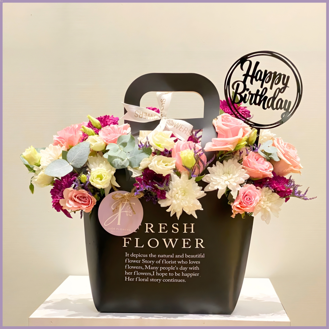 Dramatic Birthday Wednesday Floral Bag with Birthday Topper