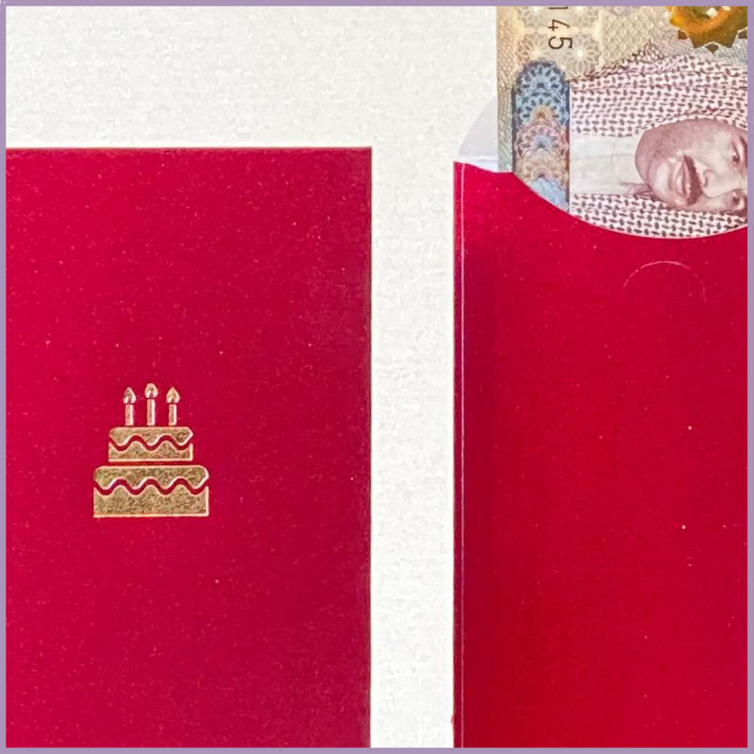 Celebrate birthdays with a refined and thoughtful touch using this elegant maroon money envelope, designed with a delicate gold birthday cake print.